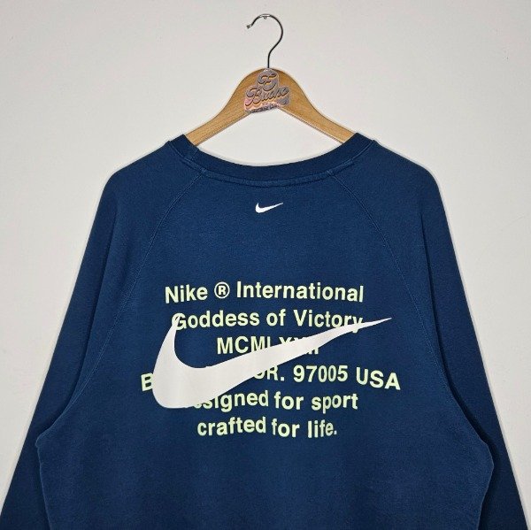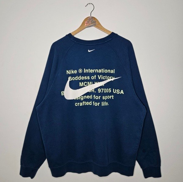 • Presenta un gráfico prominente en la espalda con el logotipo "Swoosh" de Nike, el texto "Nike International Goddess of Victory".